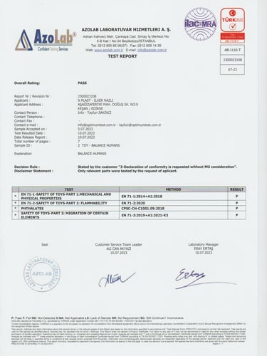 Denge adamlar oldukça rijit bir yapıda olup, kuşaklar boyunca mekanik özelliklerini koruyacak dayanıma sahiptir. Mutlak dayanıklılığa sahip olmasının yanında, fitalat ve benzeri zararlı maddeler içermeyen, salınım yapmayan, ve gıda ile teması sakıncalı bulunmayan ham maddeler ile imal edilmiş, gerekli tüm laboratuvar testlerine tabi tutulup, güvenirliği kanıtlanmış ve belgelenmiştir.